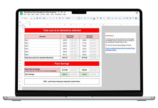 • Do-It-All List - in case you don’t want to use the calculator, I’ve included a list of all of th e attractions that are in the itinerary, and I’ve calculated your savings (£200/$260).