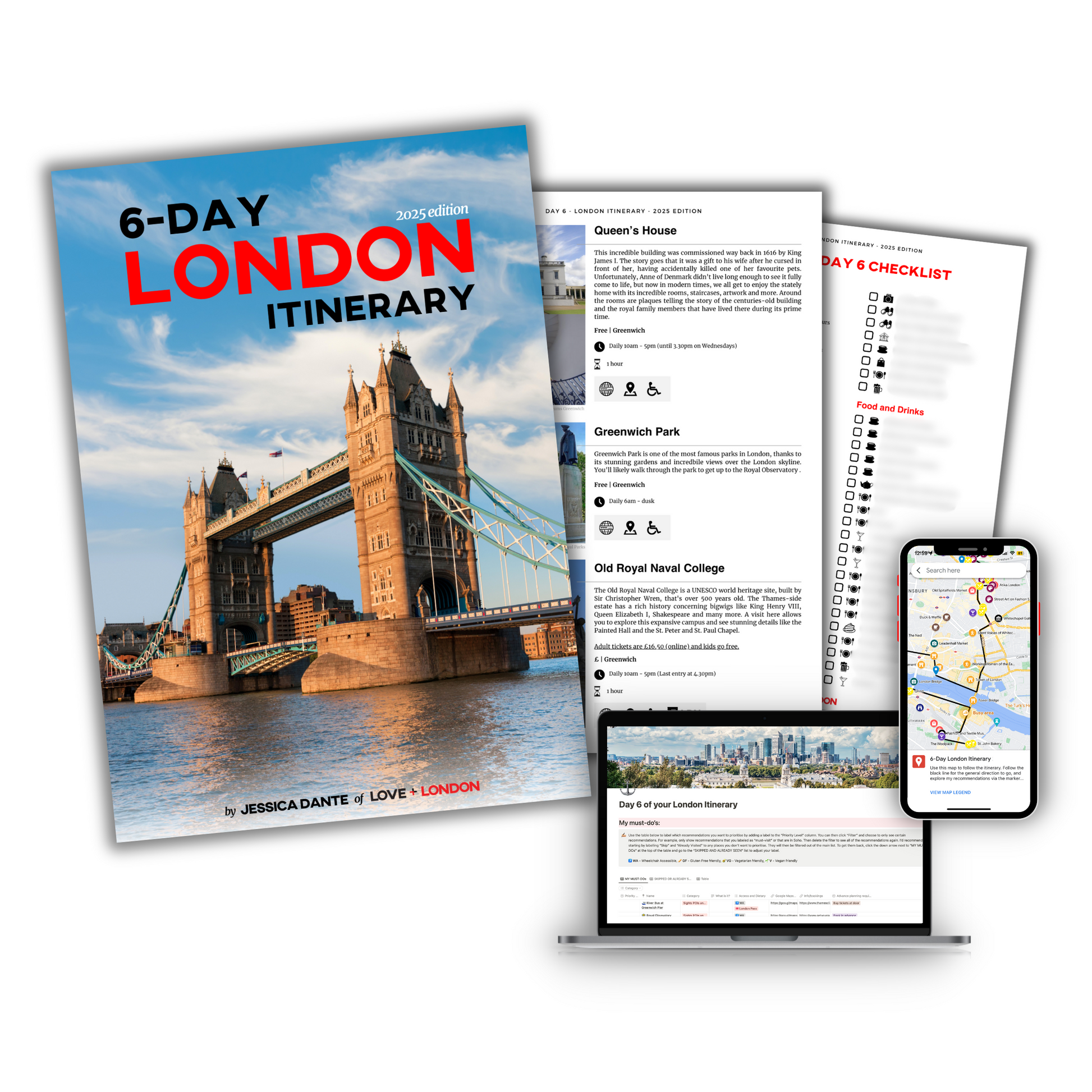 My London Itinerary, tells you which walking route to follow each day, and which sights, tours, restaurants, bars (and more) are absolutely worth visiting along it. You pick which ones suit your taste, interests and budget, and follow each route with your digital map.