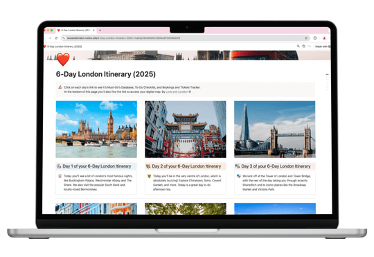 Watch this video to see how to use the Notion templates with our London Itineraries.